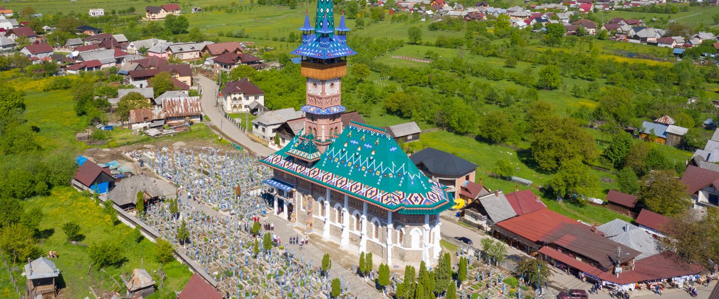 Nach dem Frühstück fahren Sie nach Sapanta, wo Sie den "Heiteren Friedhof" besuchen. Dieser einzigartige Friedhof ist bekannt für seine bunten Grabkreuze und humorvollen Inschriften, die dem Tod den Stachel nehmen. Anschließend erkunden Sie die Region Maramuresch, die für ihre traditionellen Holzkirchen und kunstvoll verzierten Tore bekannt ist. Nach einem weiteren Besuch der Holzkirchen, wie Barsana und Bogdan Voda, fahren Sie über die Pässe Prislop und Mestecanis in die Bukowina. Abendessen und Übernachtung in Gura Humorului.