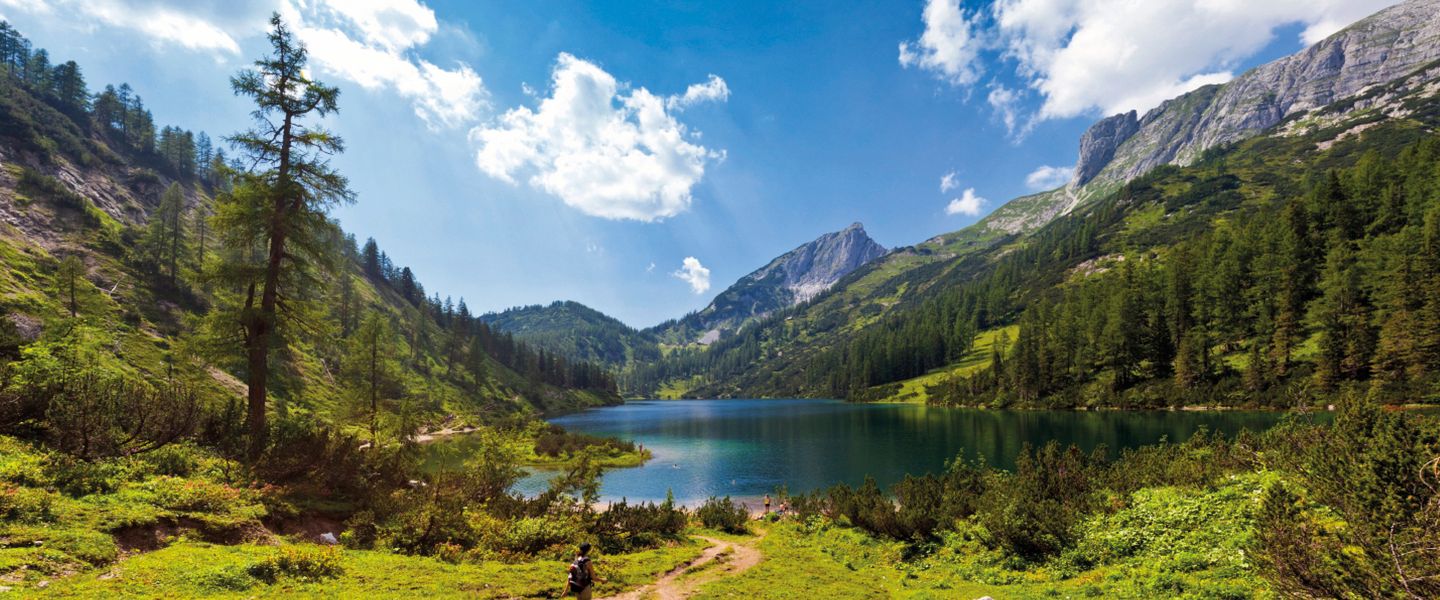 Auf der Höhe von 1650 m erwartet Sie eine der schönsten Hochalmen des Salzkammergutes mit 6 Bergseen. Genießen Sie die Rundfahrt mit dem Bummelzug über das Hochplateau der Tauplitzalm mit Aussicht auf das Dachsteinmassiv.