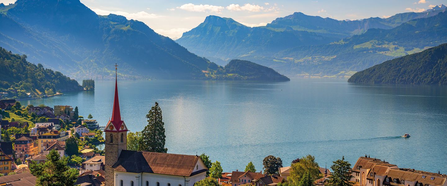 Die Gegend um den Vierwaldstättersee ist ein einzigartiges Juwel. Die bergige Landschaft rund um den See ist reich an historischen Sehenswürdigkeiten und atemberaubender Natur. Hier finden Sie das Tell-Denkmal, raue Gipfel, lebendige Städte und abgelegene Hochgebirgstäler in dieser wunderschönen Ecke der Schweiz. Eine Schifffahrt am See sowie die Zahnradbahnfahrt auf die Reigi runden diese Reise ab.