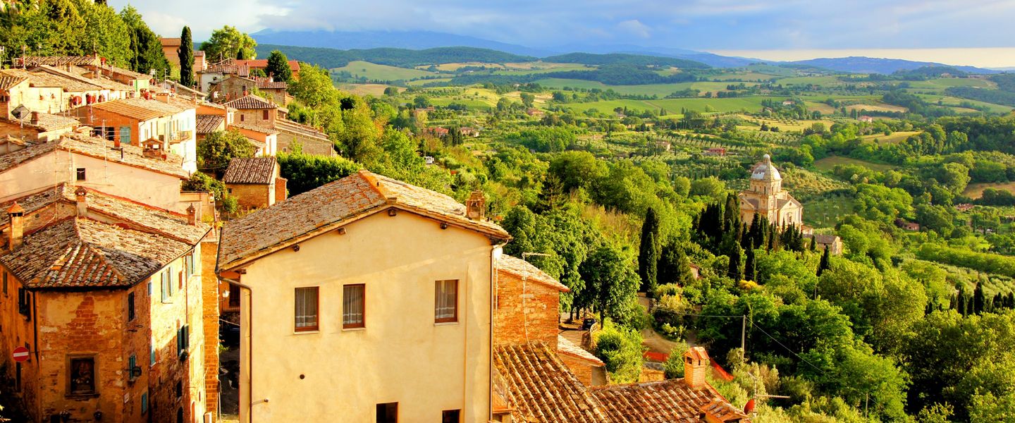Zuerst fahren Sie nach Pienza, wo Sie sich in einem der Geschäfte mit Leckereien für das spätere Picknick eindecken. Die Wanderung führt von Pienza nach San Quirico, wo Sie Ihr Picknick mit typischen Köstlichkeiten, wie dem berühmten Pecorino-Käse, genießen. San Quirico ist bekannt für seine gut erhaltene Stadtmauer, historischen Paläste und Kirchen sowie den Garten Horti Leonini, einen historischen Renaissance-Garten. Nach der Besichtigung geht es mit dem Bus nach Montepulciano, wo Sie die charmante Altstadt und die Weine der Region probieren können.
